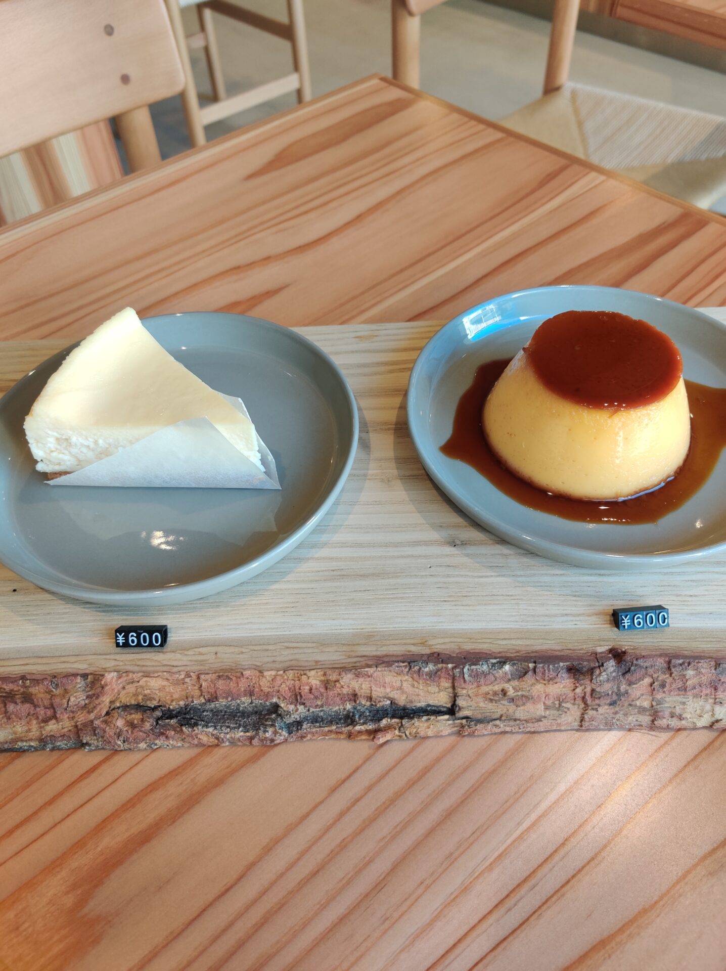 The baked cheesecake is steamed and slowly cooked to achieve a rich flavor. The custard pudding, as you can see from the picture, is a jumbo size that would be perfect for two people to share.