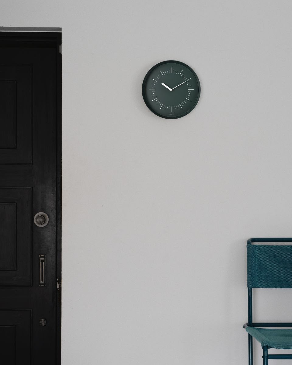 The deep green color creates a calm, refined atmosphere, while the white dial and hands add a subtle sense of lightness. Like the existing models and colorways, this new HORN blends effortlessly into any space, bringing a quiet, understated presence wherever it is placed.