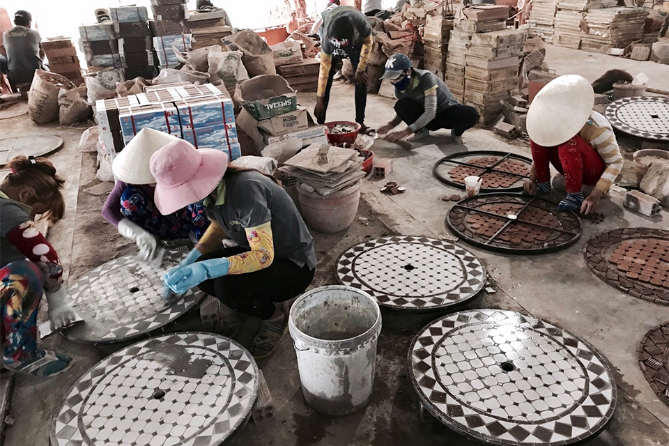 Also, maybe you can feel a warm taste from whole atmosphere of STONEWARE, which is expressed by its texture, colors, and forms. I think this is a special attraction coming from the unique skills of the Vietnamese craftspeople.