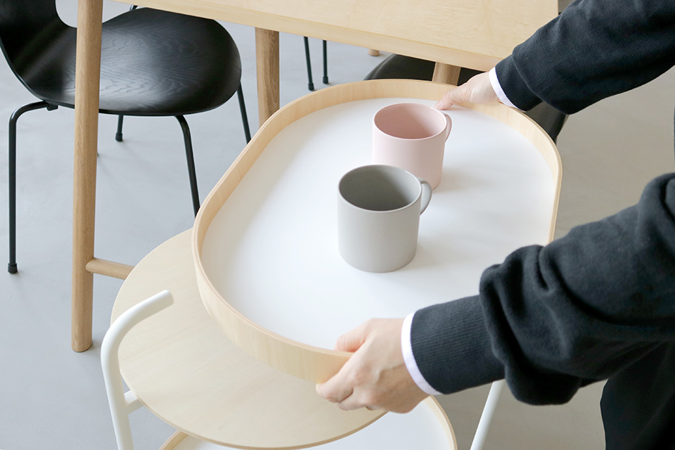 TROLLEY is classified in the category of “kitchen wagon,” but it can be used for various locations. For example, it fits perfectly when you place it besides a sofa, and comes in handy around a desk. Actually, it can also be used for serving coffee or tea at meeting at the office.